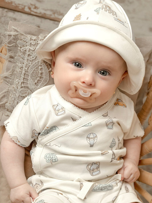 Conjunto Primeiro Verão: kimono + chapéu para pequenos.